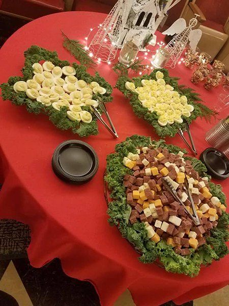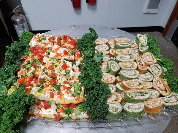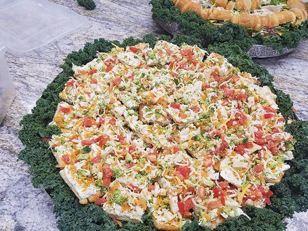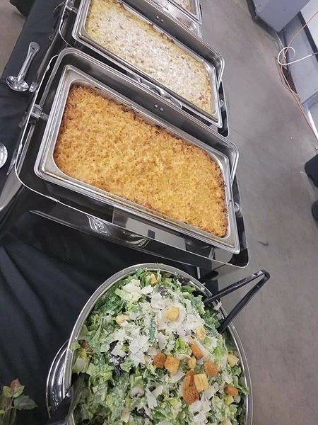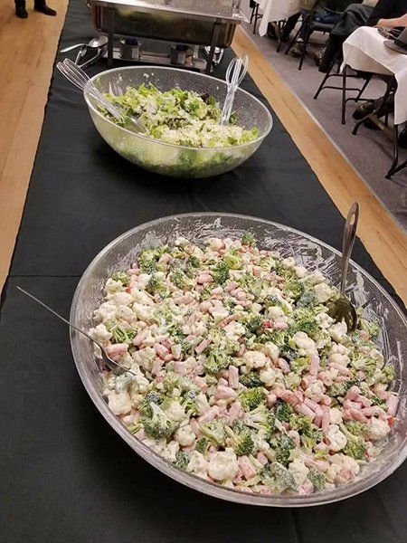 Macaroni | Pasta | Coleslaw | Potato | Caesar | Green Salad | Chicken Oriental | Brocolli-Califlower | Mexican Corn | Fruit | Veggie Pizza | Bowtie Caesar Pasta Salad / Pea Salad