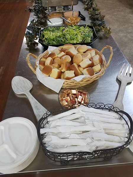Buffet will include 3 sides of your choice, rolls and condiments